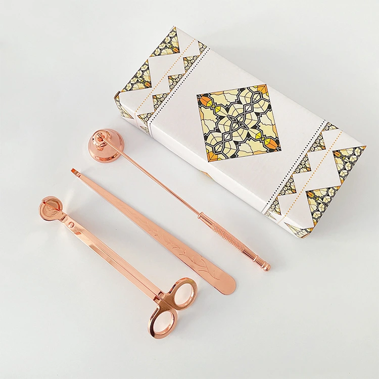 Gure Candle Wick Care Tool Set merkatuan nabarmentzen da funtzionaltasunaren, eskulanaren eta ikusmenaren erakargarritasunaren konbinazio bikainagatik. Electroplated lau akaberek luxuzko itxura kohesionatua ematen dute, edozein etxeko dekorazioa, txikizkako pantaila edo estudioko ingurunea osatzen duena. Eguneroko kandelak zaintzeko edo apaingarri gisa bistaratzen den ala ez, multzoak erritual eta dotoretasun sentsazioa gehitzen dio esperientziari.